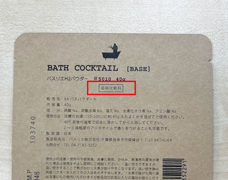 「入浴剤」と名乗って良いものはパッケージの裏面に「浴用化粧料(浴用化粧品)」「医薬部外品」のいずれかの記載があります。