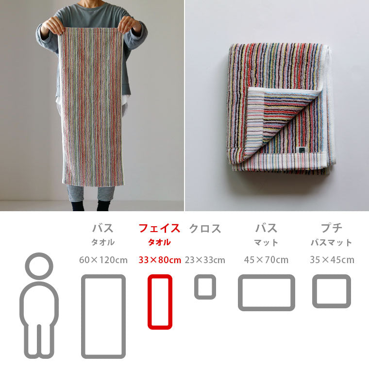 タオル製造の際に出てしまう残り糸を使うことによって、環境にやさしいタオルができました。 その時の残り糸の色合いで出来るミックスボーダーがナチュラルな暮らしに彩りを。 生産ロットにより色目が変わってきますので、特別感を感じる1枚に。 厚手で丈夫、耐久性があるネオ・リバイブのタオルは、これから長いお付き合いになることでしょう。 男女を選ばない色・柄なのでバスタオルやバスマットとセットにして贈り物にもおすすめですよ。 ※ご利用のモニター環境により色味に差異が生じる場合がございます。 ※生産ロットにより色目がかわります。お色選びができませんので、ご了承ください。 ※「ネオ・リバイブ」は「リバイブ」の進化商品となります。リバイブ(34×88cm)より少し小さく、吸水性はアップ。見た目や形状は変わりません。 |