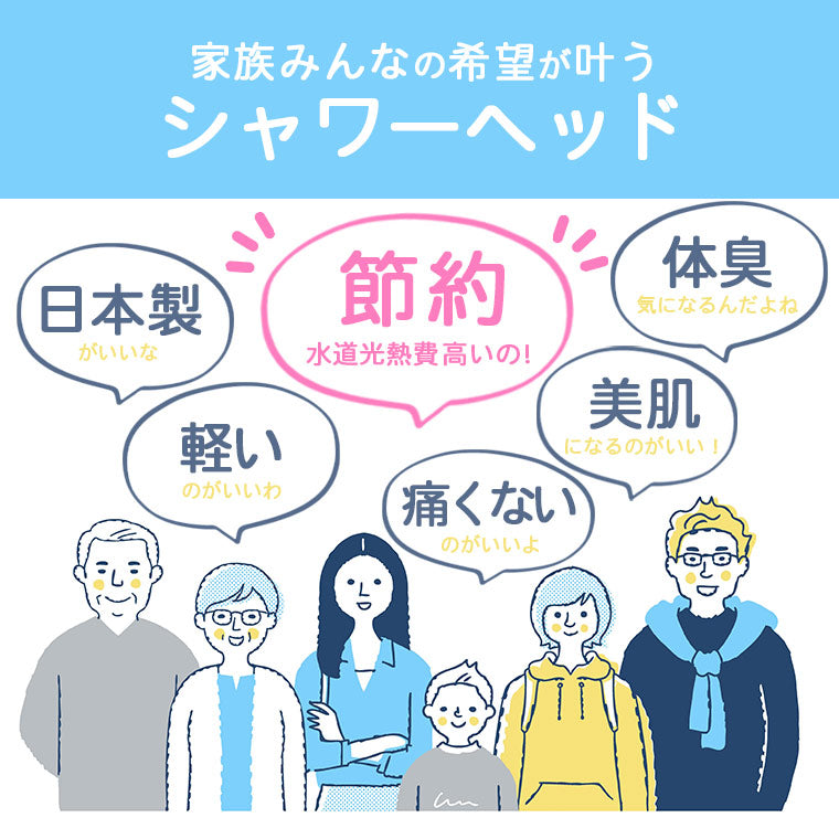 家族みんなが「毎日使いたい」希望を叶えるシャワーヘッドです。